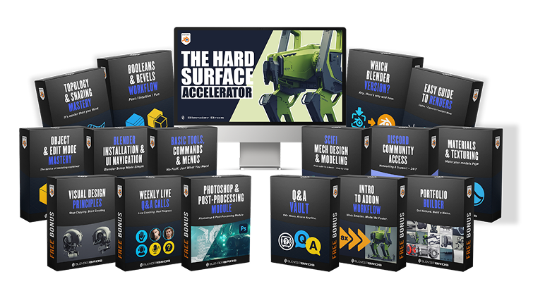 Learn the foundations of hard surface 3D modeling in Blender – in just 30-60 minutes per day over a 2-week period. This will give you the entire foundation for 3D hard surface modeling in Blender