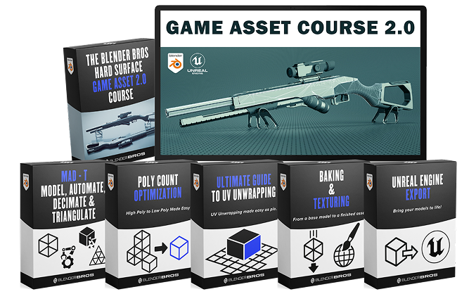 We've included a full set of commentated, real-time tutorials on the creation of the SciFi rifle (shown in the course and on the thumbnail).