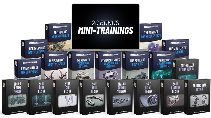Watch step-by-step as we walk you through how to design a very advanced model from scratch in Blender. This training is not recommended for beginners. We recommend it after you’ve consumed the main material first.